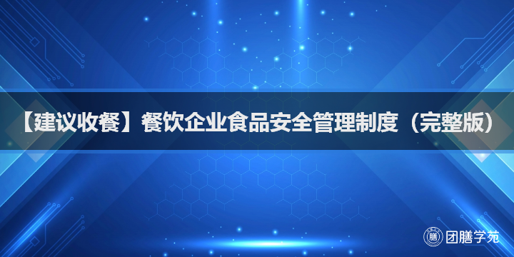 【建议收藏】餐饮企业食品安全管理制度(完整版)