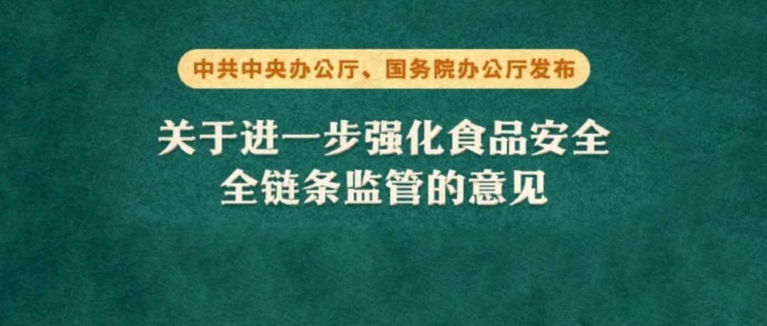 进一步强化食品安全全链条监管,两办印发意见