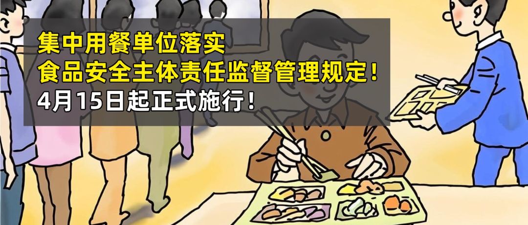 集中用餐单位落实食品安全主体责任监督管理规定!4月15日起正式施行!