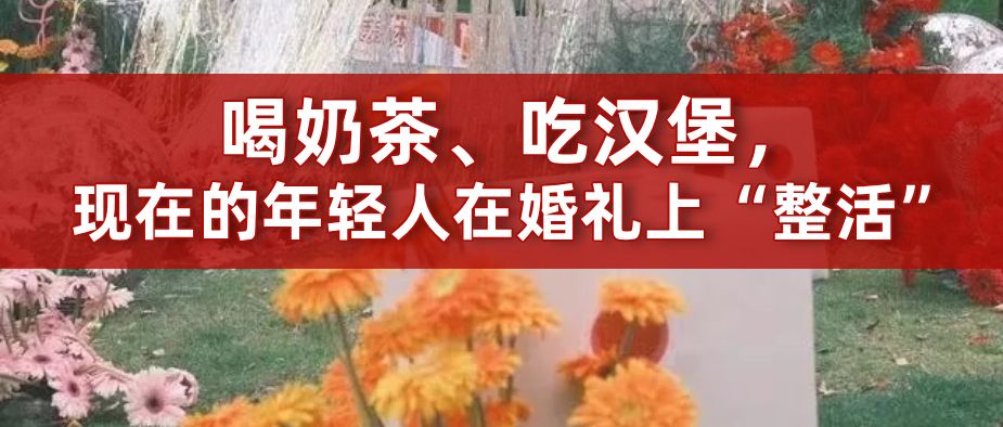 喝奶茶、吃汉堡,现在的年轻人在婚礼上“整活”