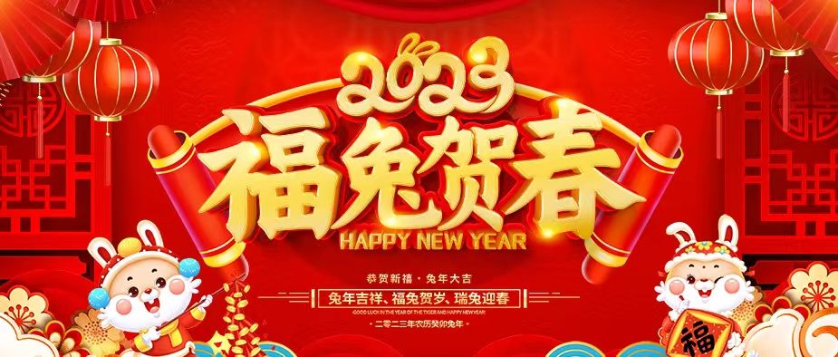 玉兔迎春,万象更新!大吉大利,恭贺新禧!
